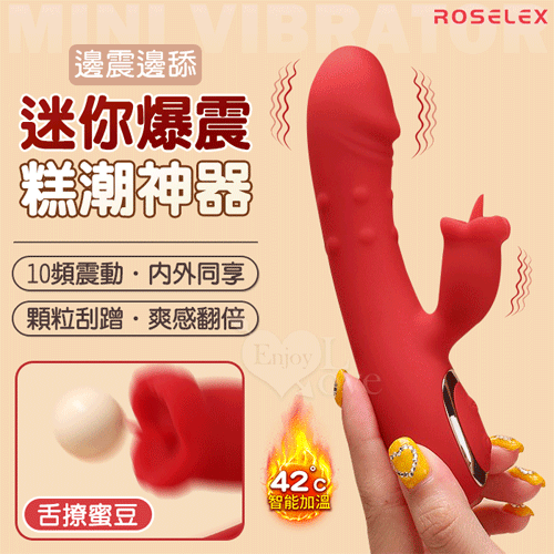 ROSELEX 迷你糕潮神器 雙10頻雙激震舌擊點 CG內外同享加溫按摩器 - 紅
