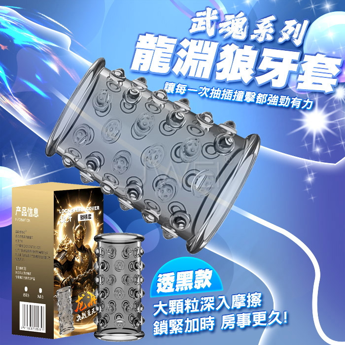 武魂系列 龍淵.大顆粒加粗水晶男士延時高潮套【透黑】