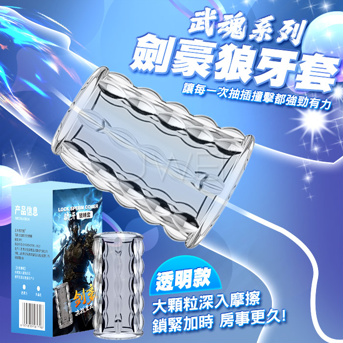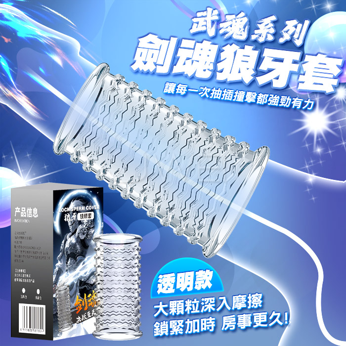 武魂系列 劍魂.鋸齒浪紋加粗水晶男士延時高潮套【透明】