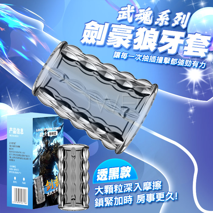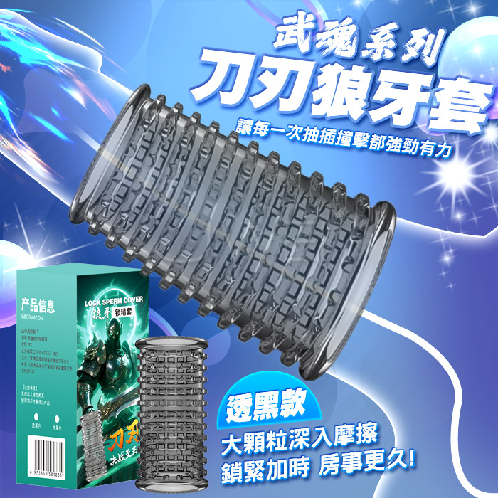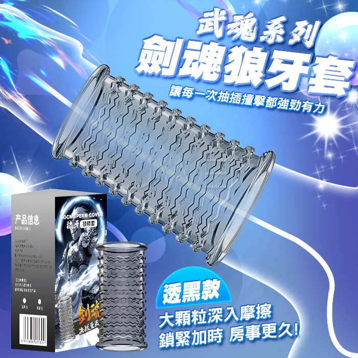 武魂系列 劍魂.鋸齒浪紋加粗水晶男士延時高潮套【透黑】