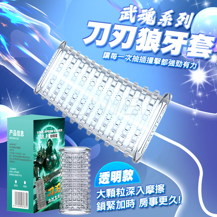 武魂系列 刀刃.密集塊狀加粗入珠水晶男士延時高潮套【透明】