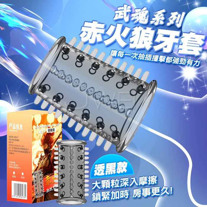 武魂系列 赤火.肉刺加粗入珠水晶男士延時高潮套【透黑】