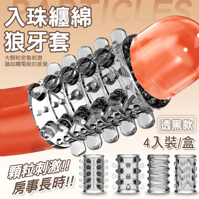 探索者.大顆粒刺激摩擦快感鎖精延時狼牙套-4入裝【透黑】