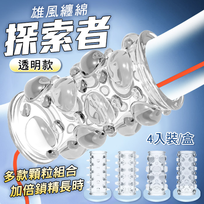 探索者.大顆粒刺激摩擦快感鎖精延時狼牙套-4入裝【透明】