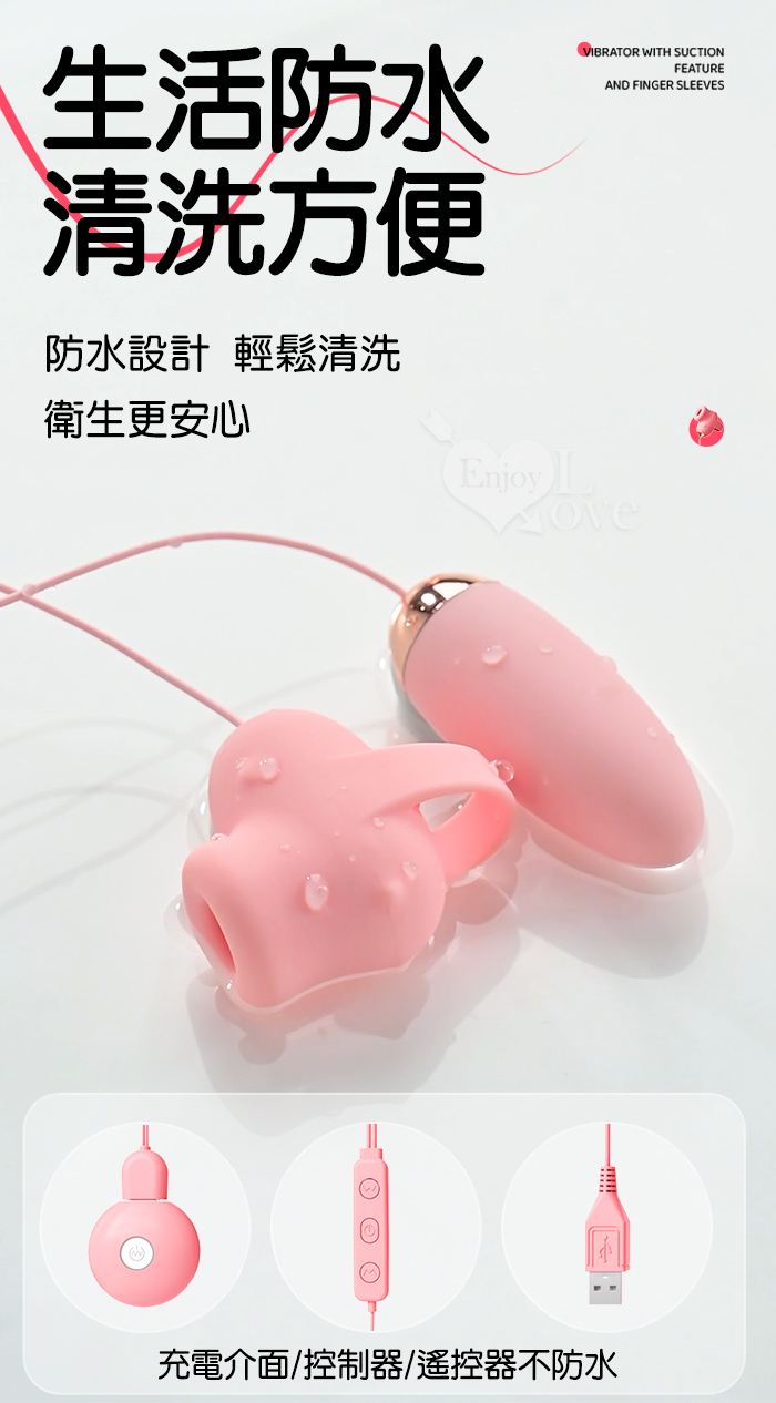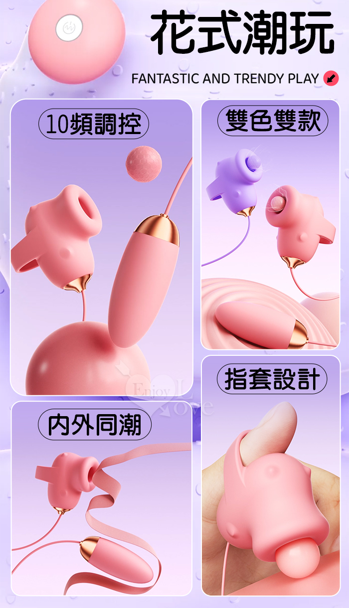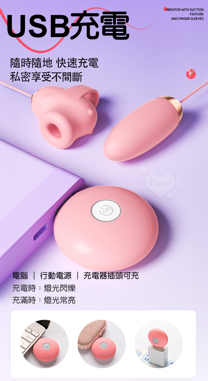 ROSELEX 勞樂斯 ‧ 覓吮 圓吸雙蛋 USB充電控制器款﹝10頻調控+指套設計+吸震陰乳﹞紫