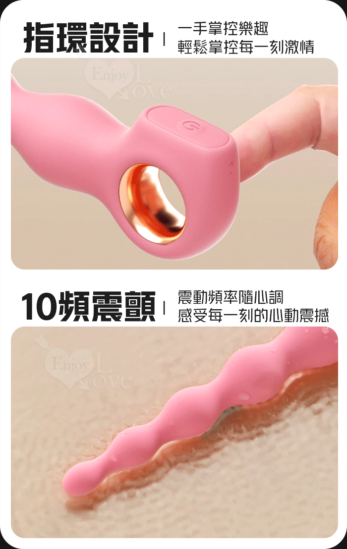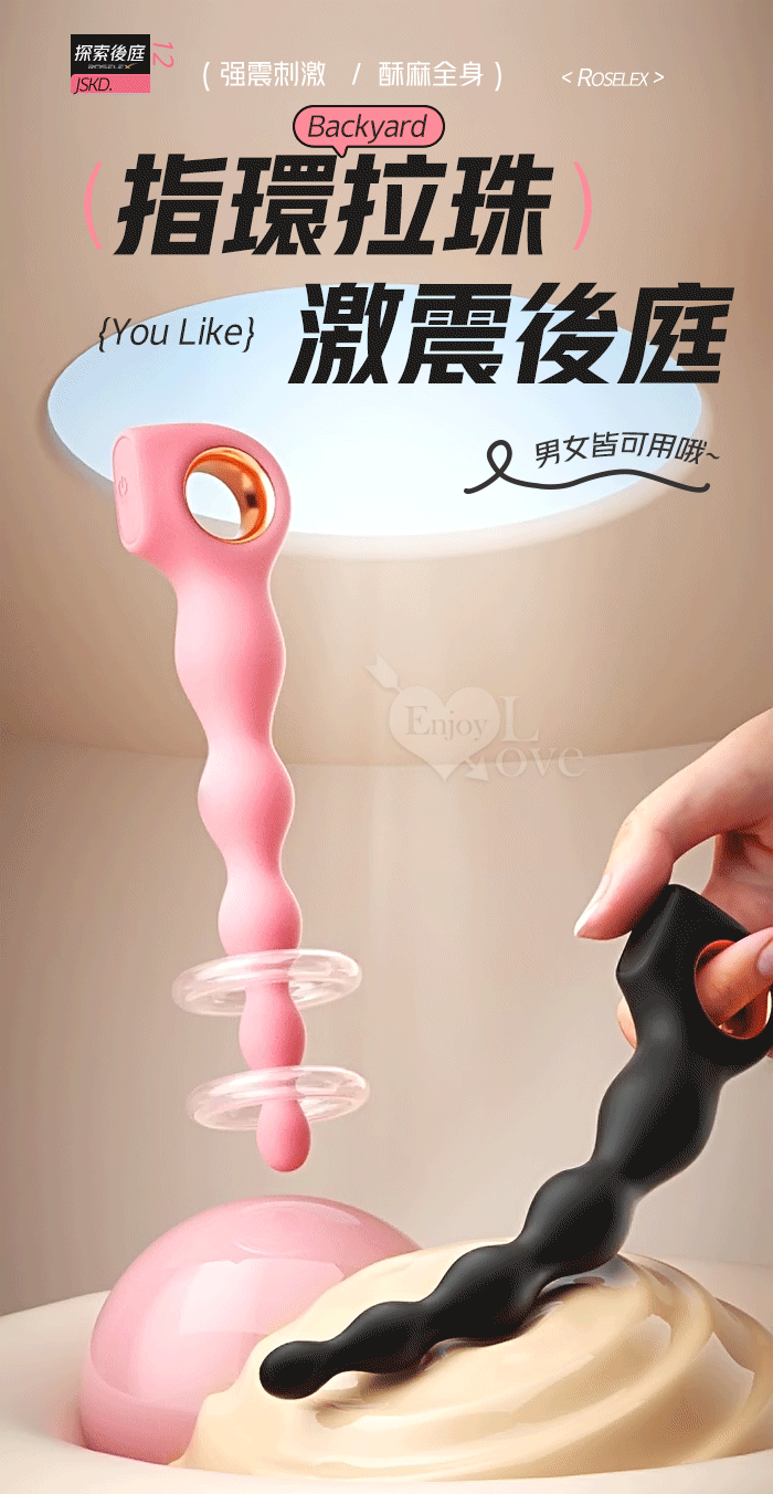 ROSELEX 勞樂斯 ‧ 指環拉珠 10頻震動由淺入深後庭刺激按摩棒﹝指環持握/男女新手通用/順滑入體﹞