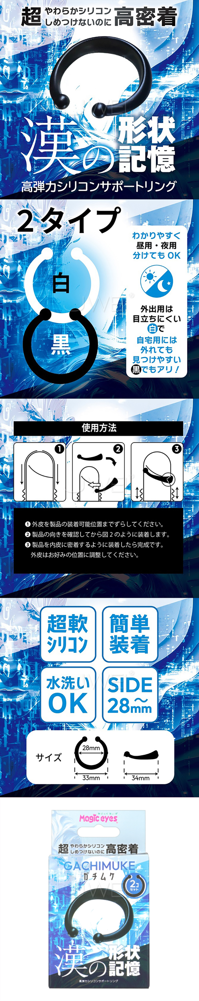 日本原裝進口Magic eyes.GACHIMUKE 漢の形状記憶 高彈力記憶包皮阻復鎖精環【2入裝】