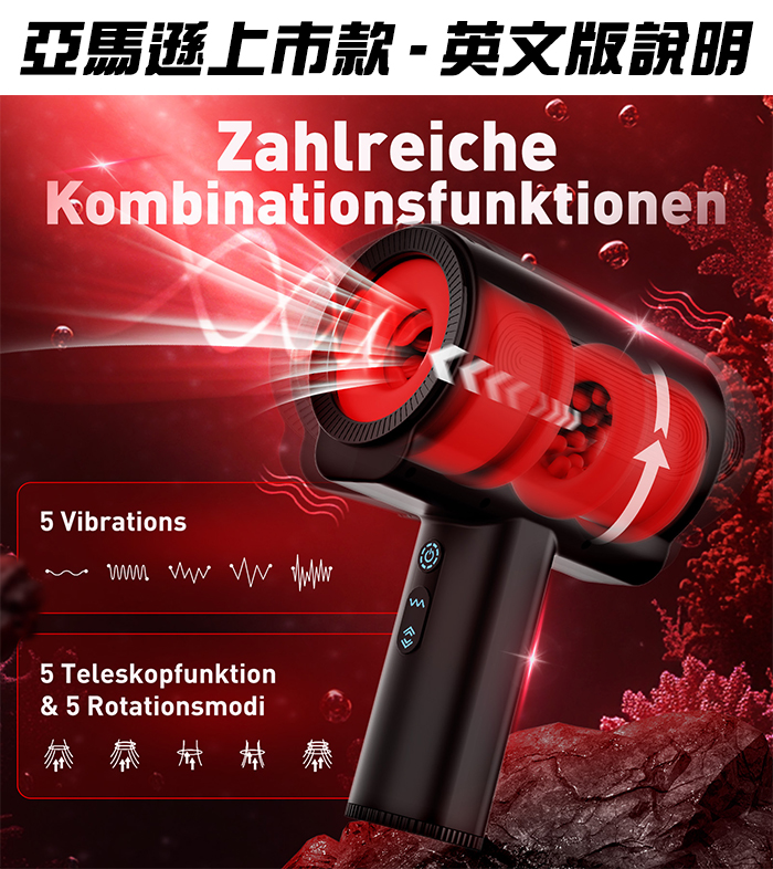 Hgod 雷神Ⅱ代 ‧ 3IN1雙引擎激速爆抽 全自動智能5X伸縮+旋轉+震動鍛鍊自慰飛機杯-紅黑 *亞馬遜上市款*