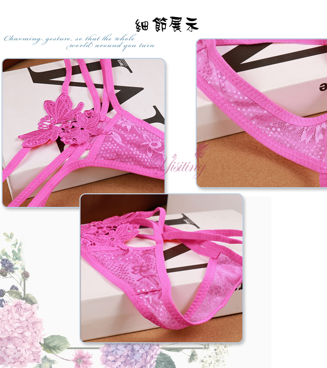 甜蜜舞動!蝴蝶雙飛彈力細帶花卉網紗美臀T字褲﹝黑﹞