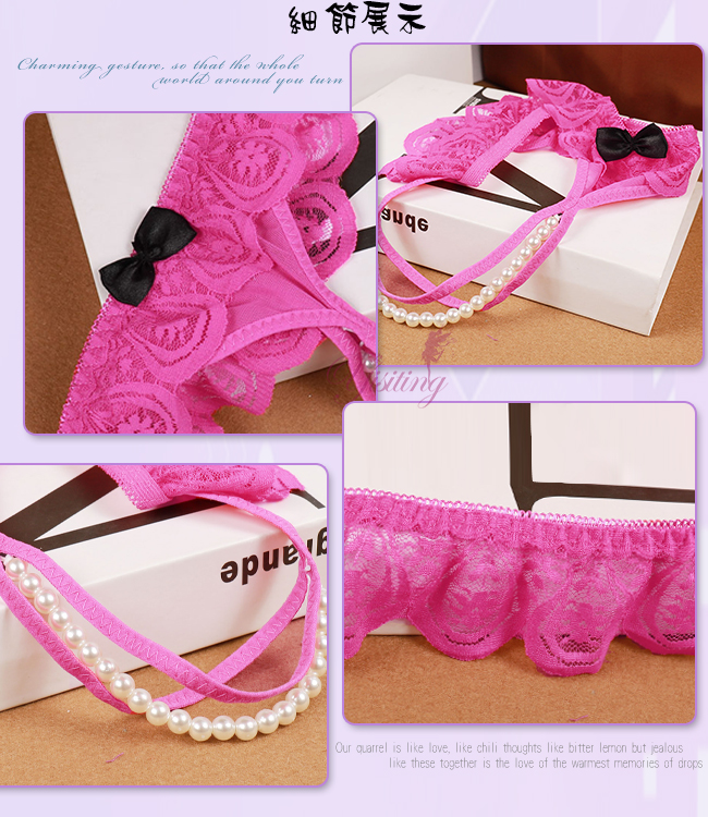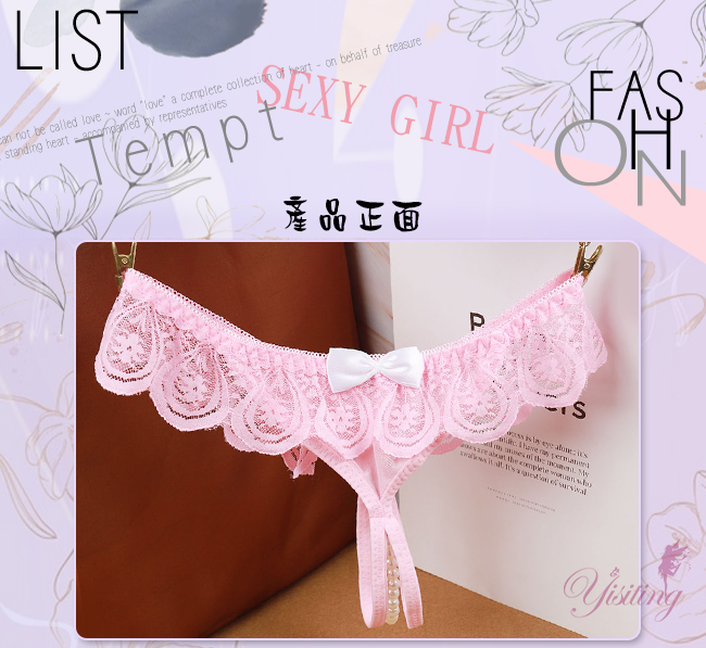 完美挑逗!蕾絲花邊露屁屁串珠開襠低腰褲﹝粉﹞