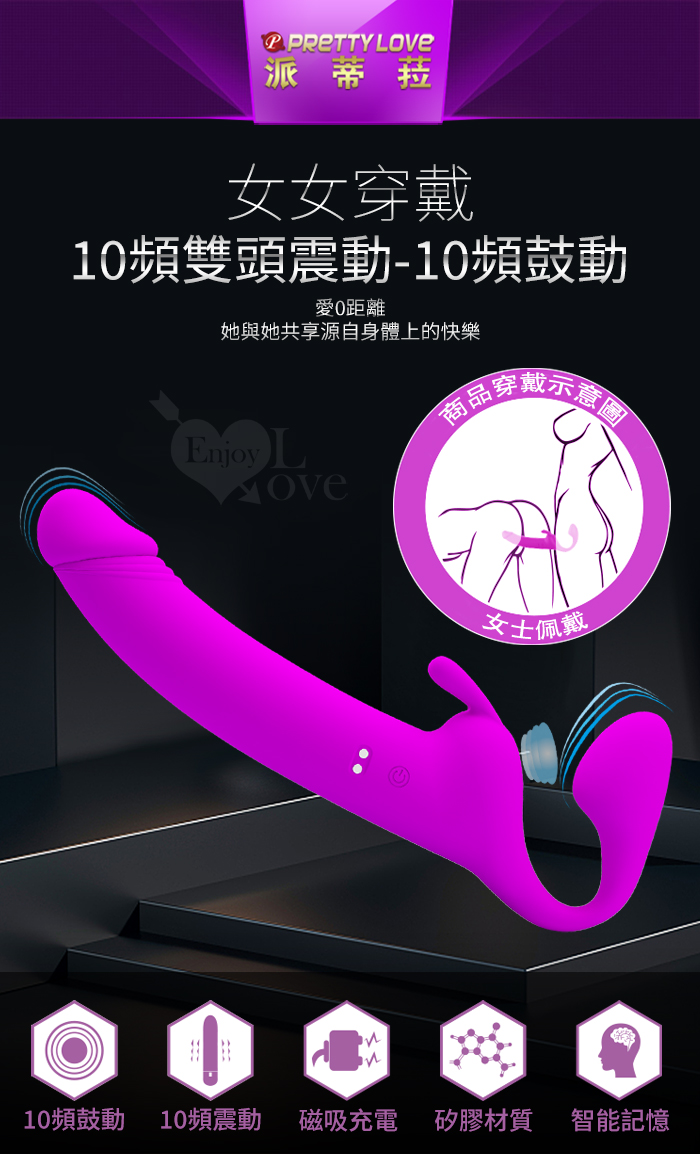 派蒂菈 ‧ Zanini 愛0距離 女女穿戴快樂共享 雙頭強震+鼓動穿戴按摩棒﹝10頻3馬達運轉+親膚矽膠+磁吸充電﹞