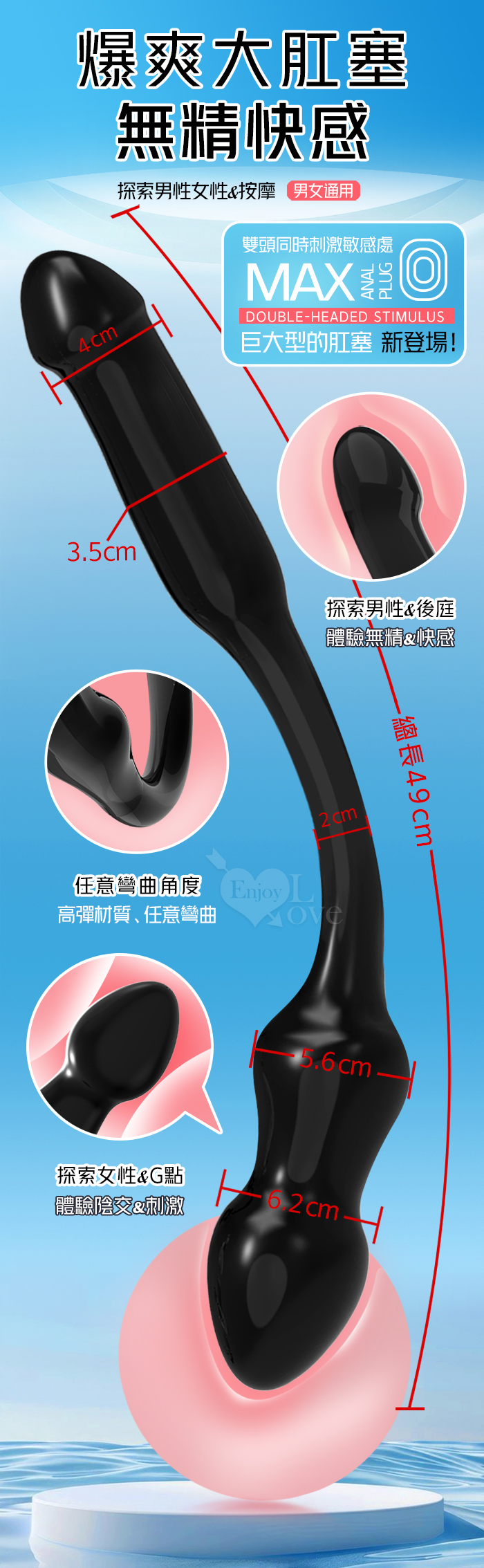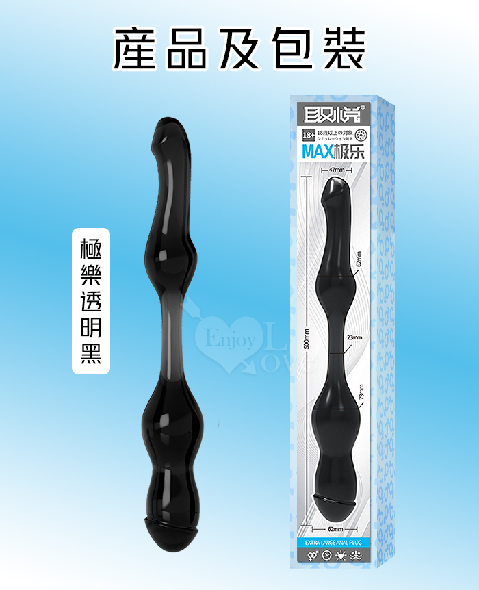 取悅 ‧ MAX極樂!XXXL巨大型雙頭水晶按摩棒-前陰後庭/男女皆適用﹝透明黑﹞