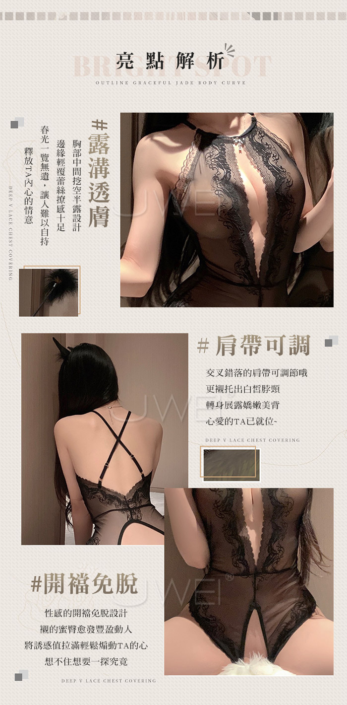 純愛戀人.蕾絲半露胸網紗美背開襠連體衣【白色】