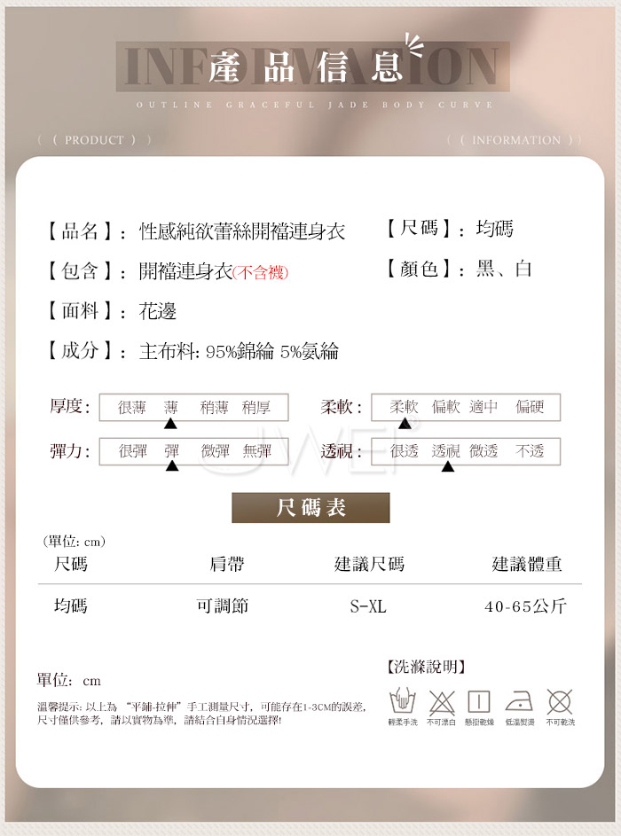 2.基於保障消費者個人衛生,情趣衣物類恕不接受退換貨,如為商品本身暇疵,接受三日內換貨,請勿試穿。