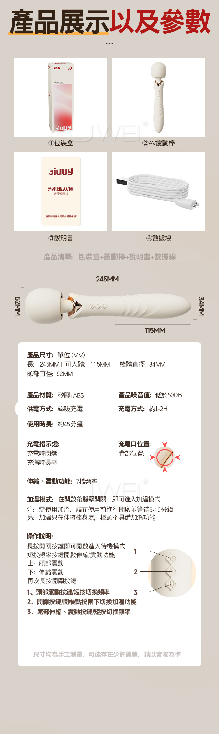 瑪莉亞.7頻爆震爽潮+7頻尾部伸縮頂撞 二合一加溫AV按摩棒