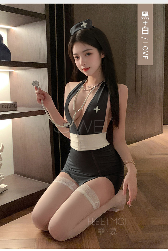 ►您現在的位置:首頁>甜氧小護士.私人護士深V露溝微開衩包臀連身裙-藍色【帽子+洋裝+T褲】