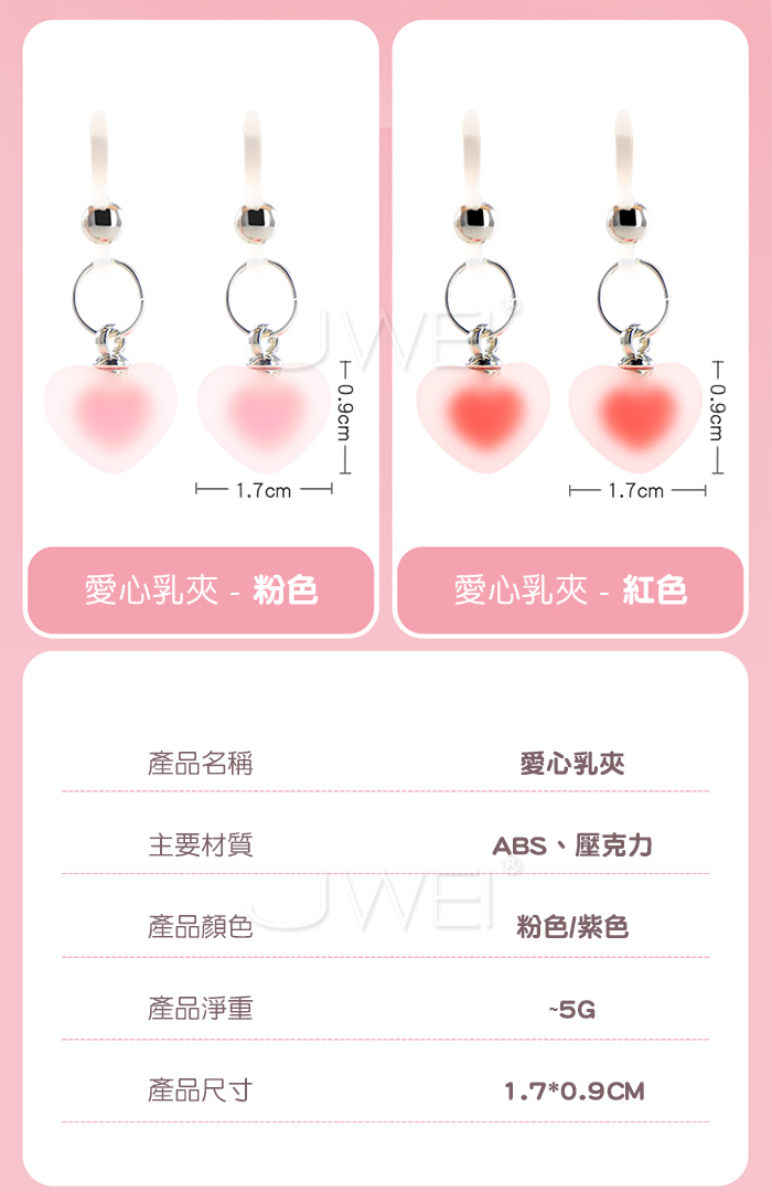 ►您現在的位置:首頁>愛心乳夾.隱蔽配戴低痛感皮筋磨砂乳夾【愛心紅】