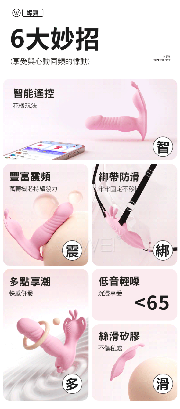 謎姬 MizzZee.蝶舞穿戴.9頻伸縮強震 蝶翼服貼深入頂撞隱形外出穿戴震動器-伸縮款【附穿戴繩】