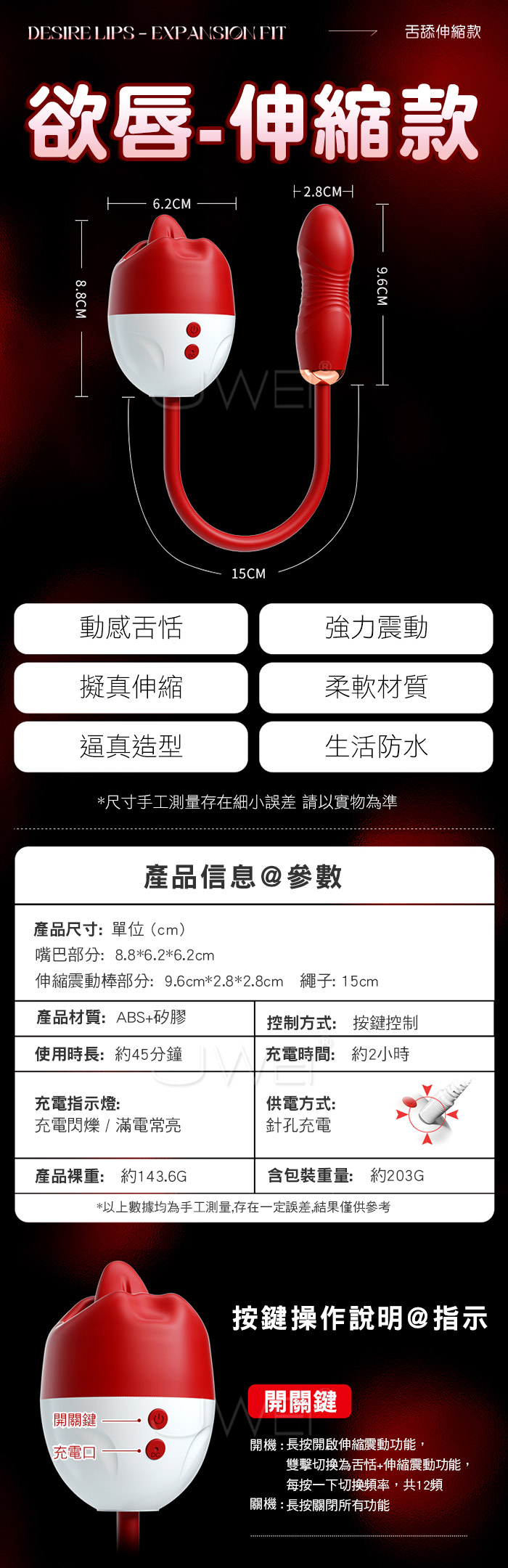 謎姬 MizzZee.欲唇伸縮.12段變頻大嘴舌撩震動+伸縮頂撞 多頻調節口愛跳蛋 【舌舔伸縮款】