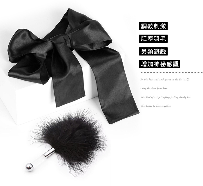 色丁布蒙眼罩+肛塞羽毛套装﹝挑逗+裝扮刺激﹞經典黑