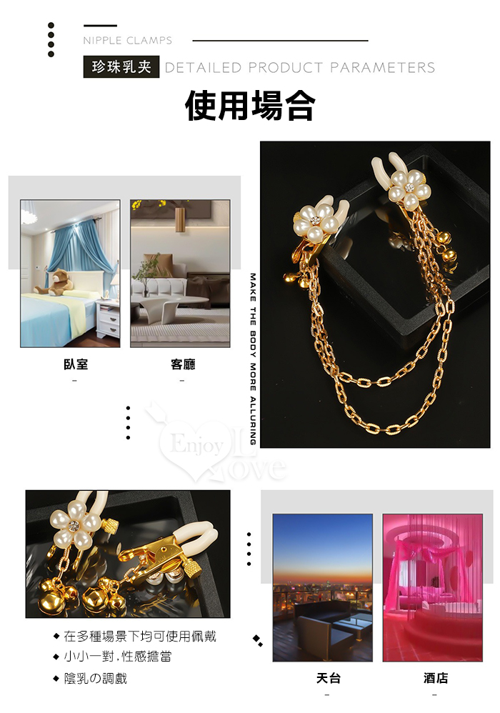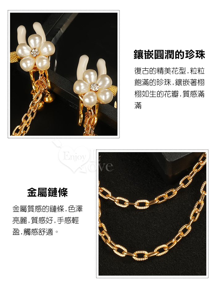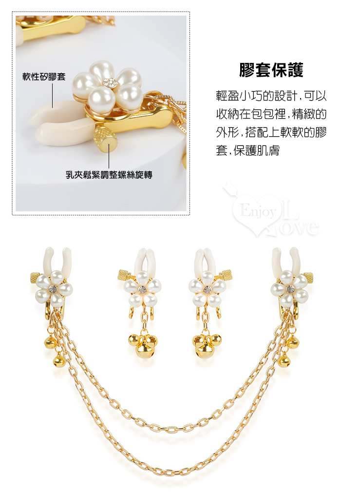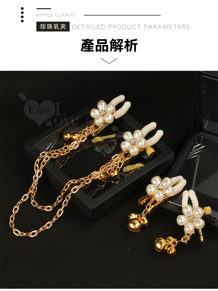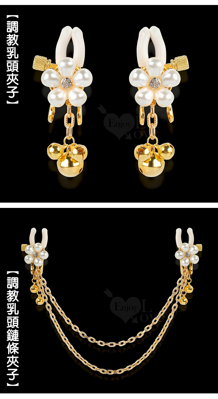 ►您現在的位置:首頁>【乳の調戲】高檔珍珠花瓣鈴鐺乳夾~女用調教乳頭鏈條夾子﹝一對裝﹞