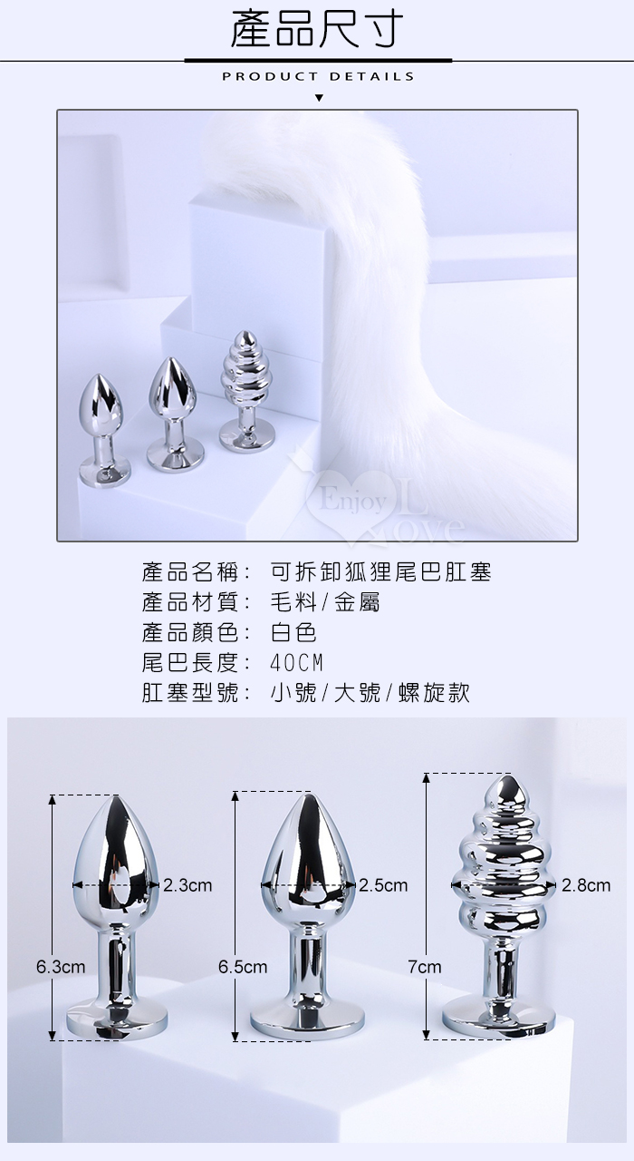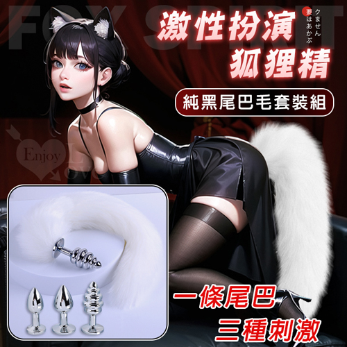激性扮演狐狸精 ‧ 3款不銹鋼後庭肛塞+純白尾巴毛套裝組﹝可組裝拆卸﹞