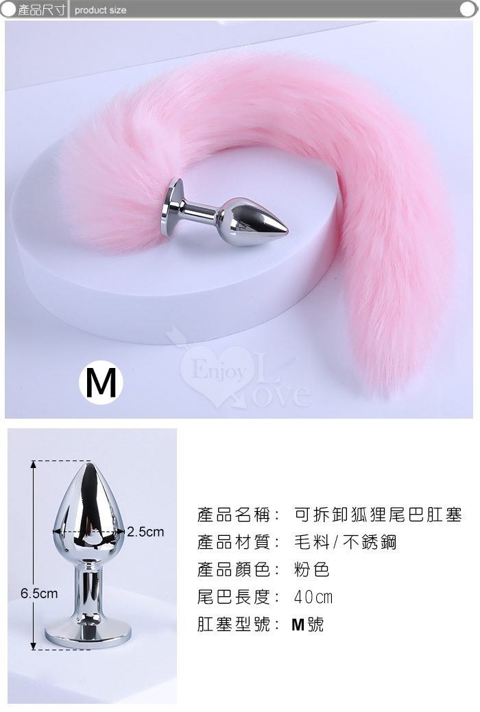 激性扮演狐狸精 ‧ 不銹鋼後庭肛塞+尾巴毛 - 粉﹝M 可組裝拆卸﹞