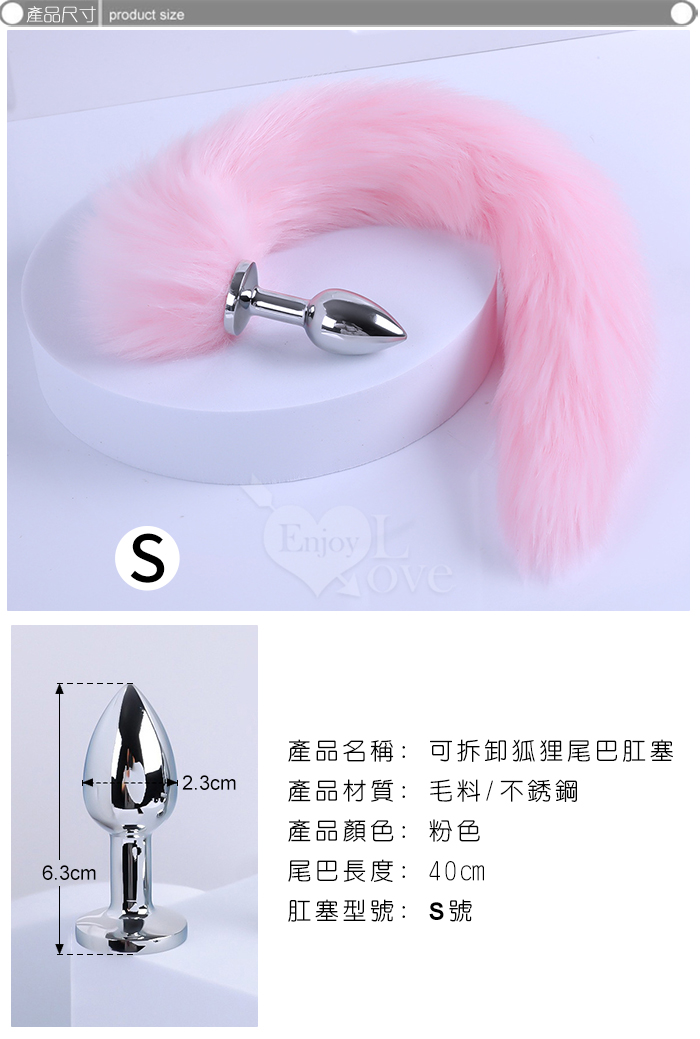 激性扮演狐狸精 ‧ 不銹鋼後庭肛塞+尾巴毛 - 粉﹝S 可組裝拆卸﹞