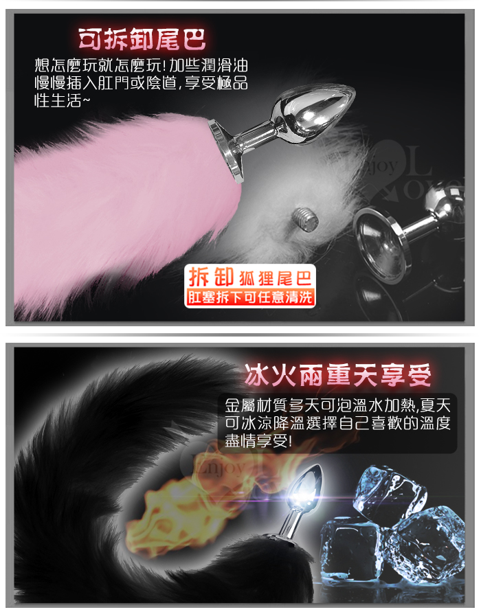 激性扮演狐狸精 ‧ 不銹鋼後庭肛塞+尾巴毛 - 黑﹝M 可組裝拆卸﹞