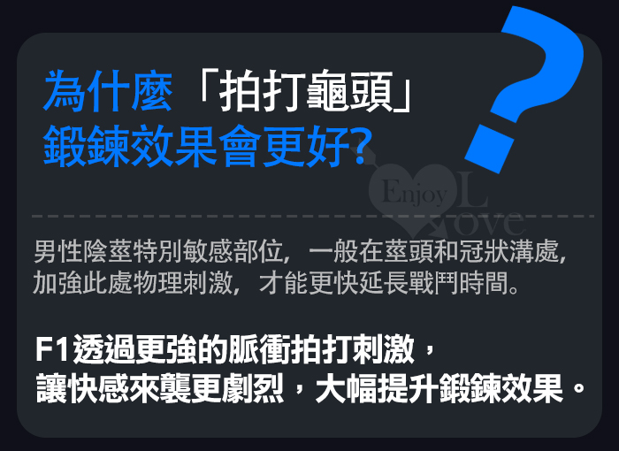 ►您現在的位置:首頁>F1訓練器 ‧ 10頻拍打震動+智能加溫 龜頭鍛鍊突破自我自慰器 - 可手機APP智控-具兩種操控模式﹝白﹞
