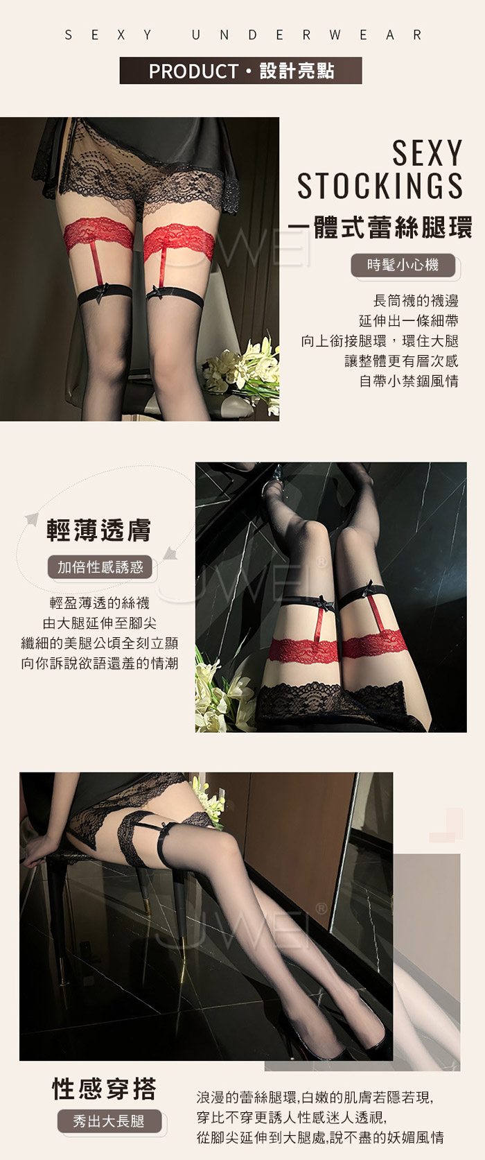 慾情誘惑.法式蕾絲花邊 蝴蝶結腿環長筒過膝絲襪【紅黑】