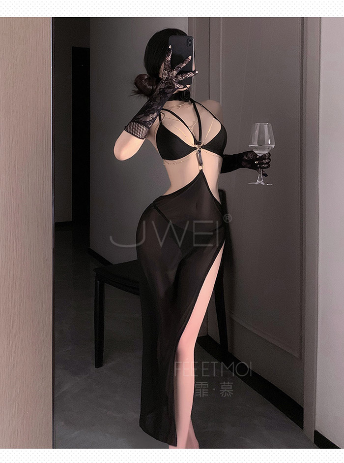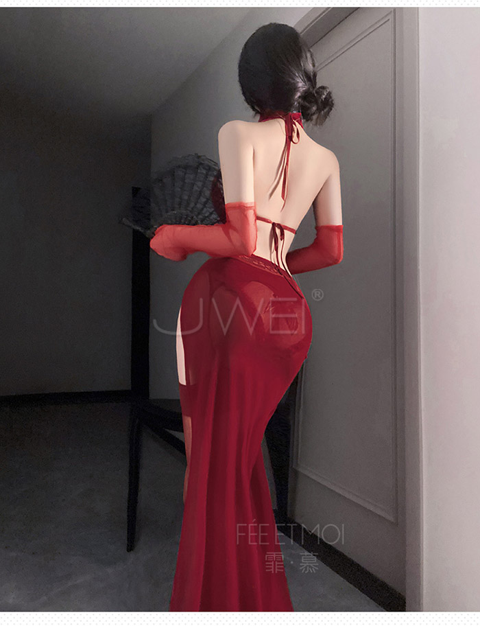 ►您現在的位置:首頁>雙色嬌妻.迷迭花樣掛脖頸環美背側高衩網紗睡裙-紅【頸環+連身裙+內褲】