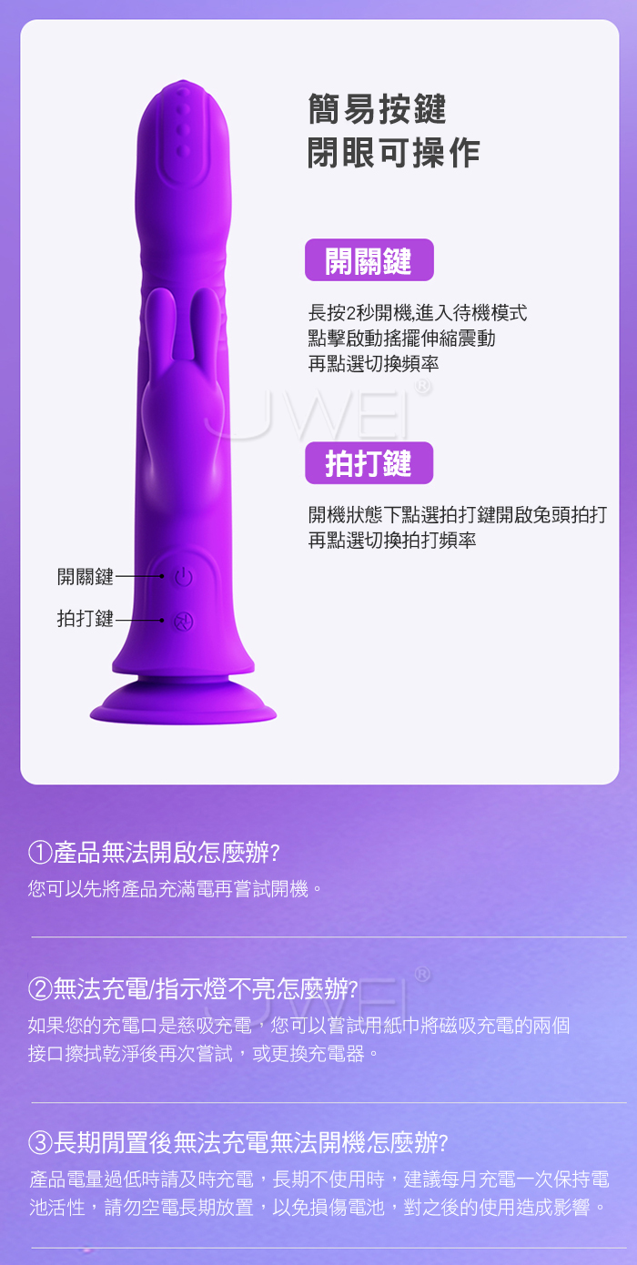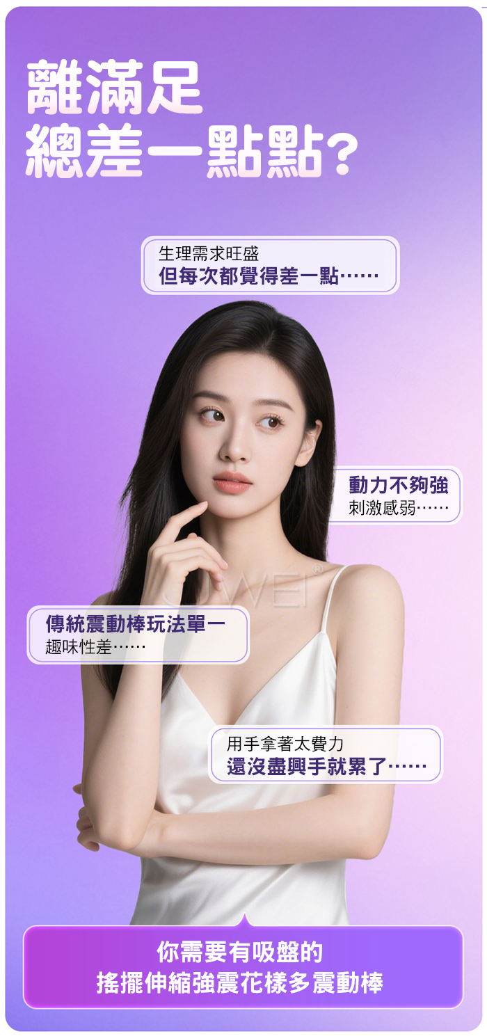 ►您現在的位置:首頁>花樣多.10x10頻強力伸縮 G點狂攪 撩撥強震 兔頭拍打 激爽吸盤按摩棒