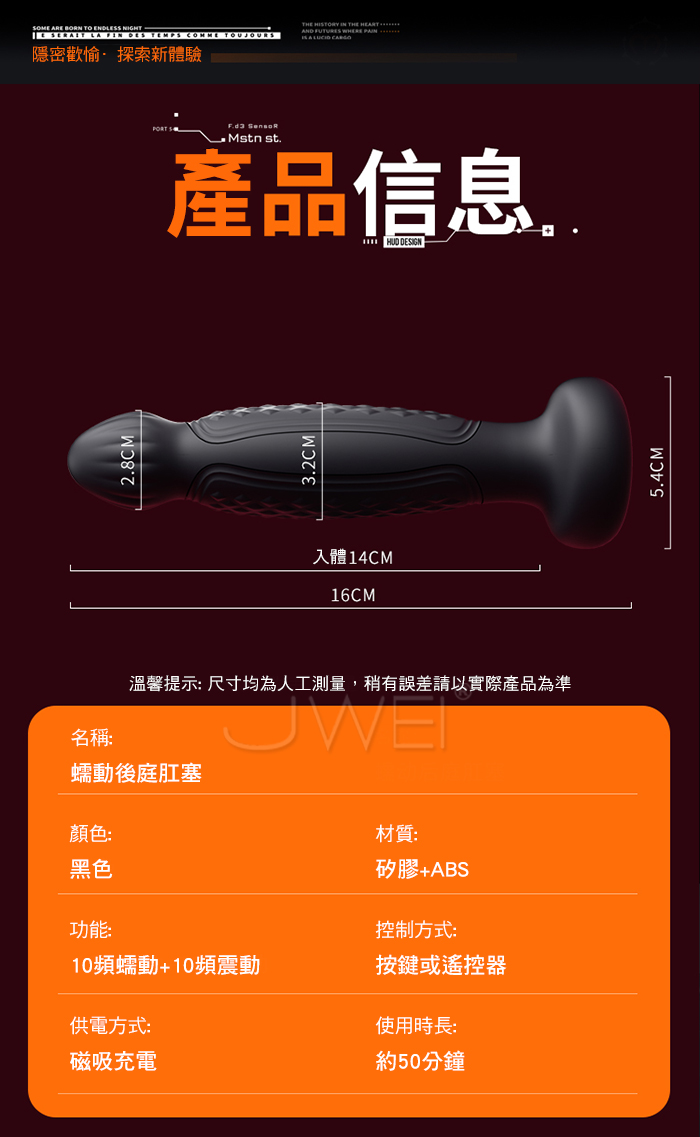 後庭蠕動.10頻擬真波浪式蠕動強震 無線遙控後庭肛塞