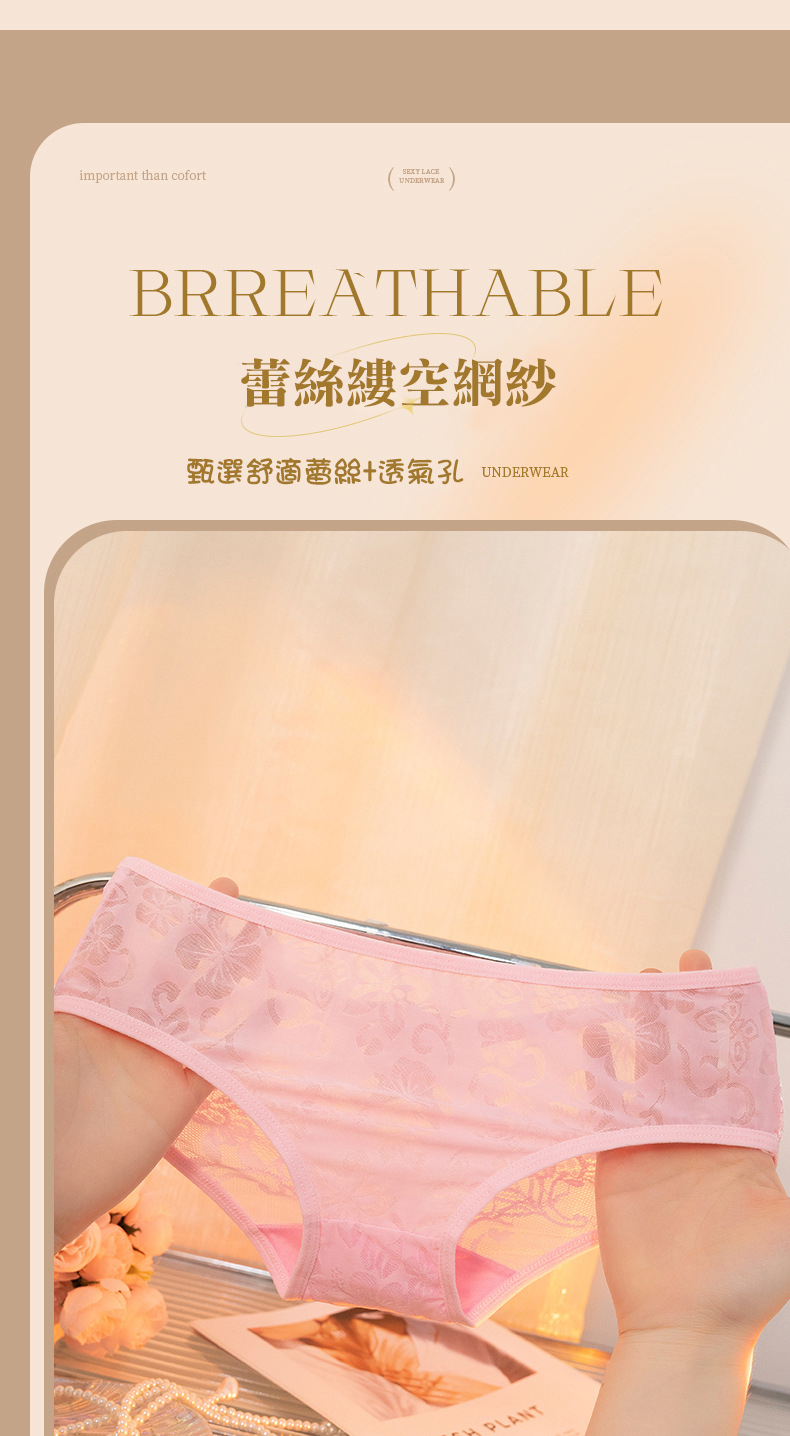 性感屁股蛋蕾絲內褲【M】性感半透網紗內褲 後背鏤空細帶蝴蝶三角褲