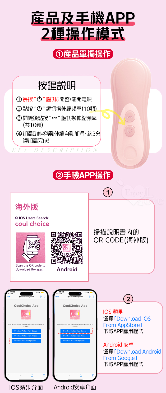 勞樂斯 ‧ 双子伸縮爆震跳蛋棒組合~邊震邊頂/10調頻/入體內外共爽/手機APP﹝具兩種操控模式﹞粉