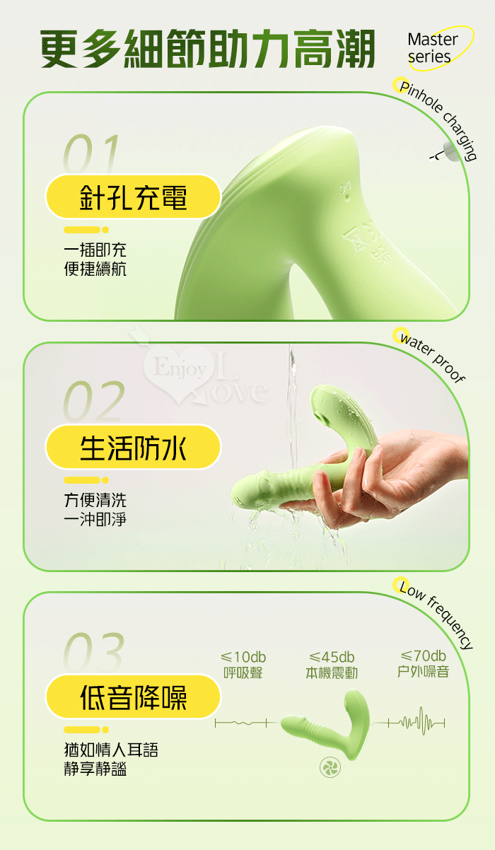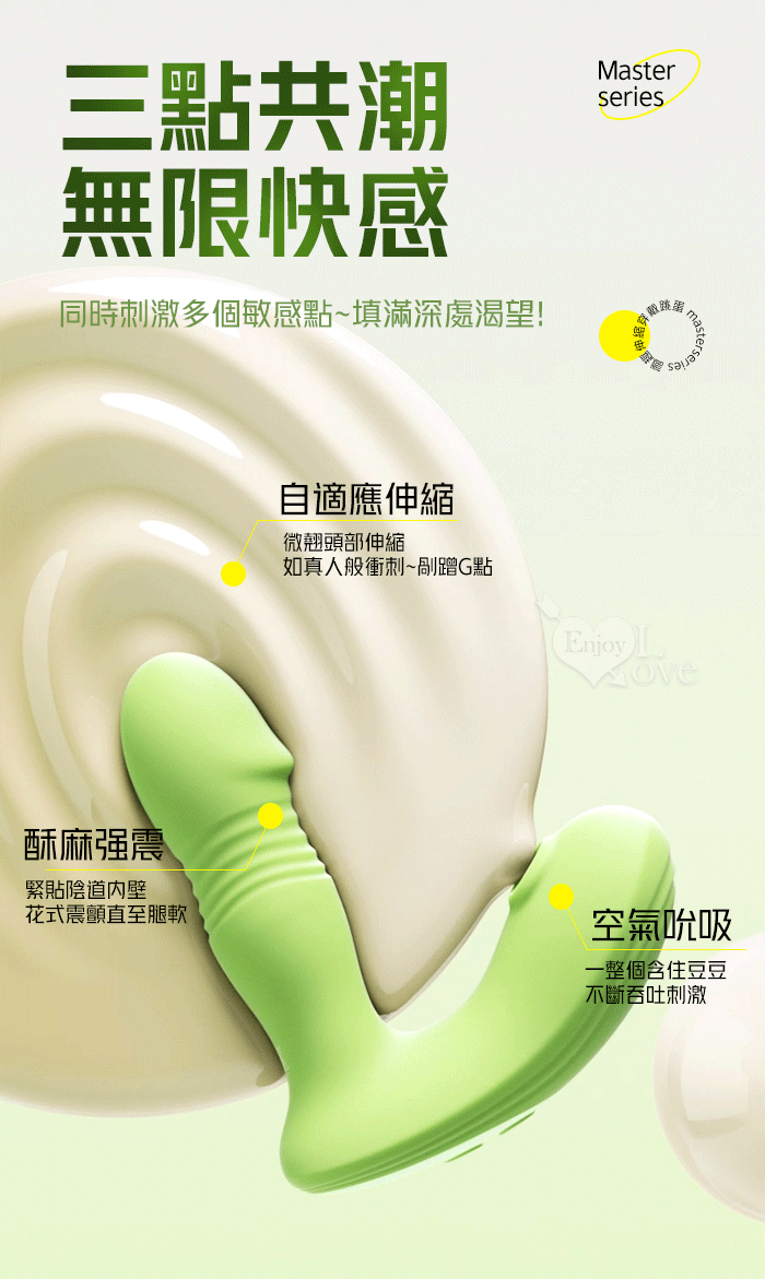 ►您現在的位置:首頁>ROSELEX 勞樂斯 ‧ 識趣 10變頻伸縮+震動/吮吸內外齊歡智能加溫按摩器 - 可手機APP遙控﹝具兩種操控模式﹞綠色