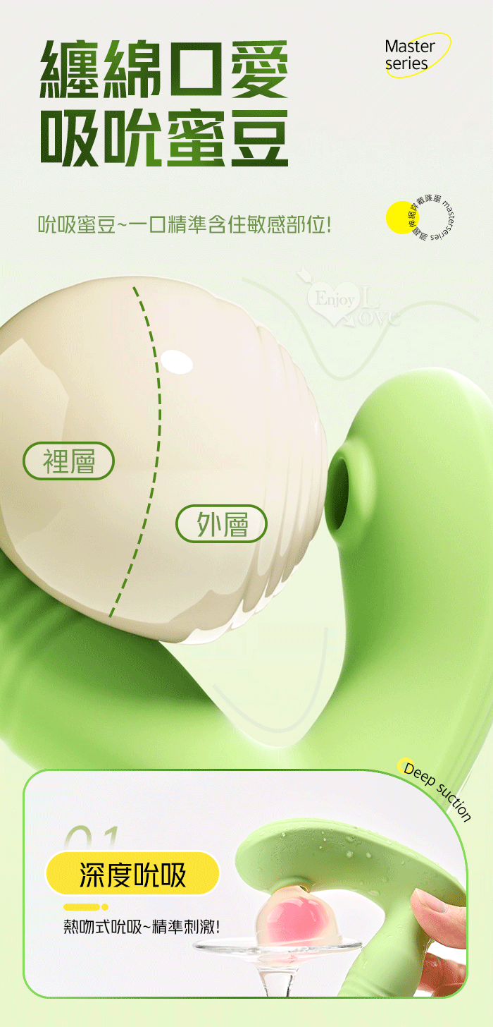 ROSELEX 勞樂斯 ‧ 識趣 10變頻伸縮+震動/吮吸內外齊歡智能加溫按摩器 - 可手機APP遙控﹝具兩種操控模式﹞綠色