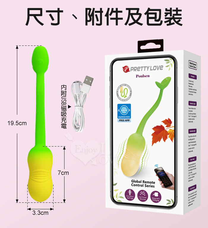 | 派蒂菈 ‧ Poulsen 波爾森 全球APP互動遙控 隱形穿戴按摩器-萌芽漸層黃綠夢幻色調﹝入體一機雙控/12頻強震/親膚矽膠/磁吸充電﹞