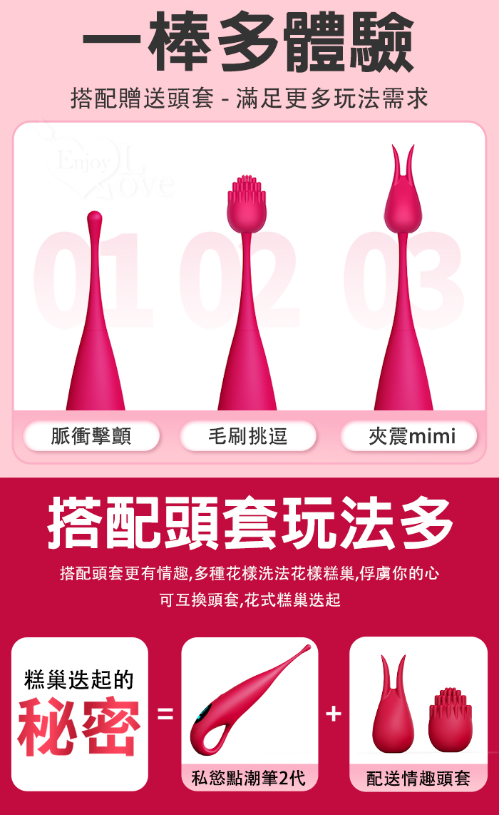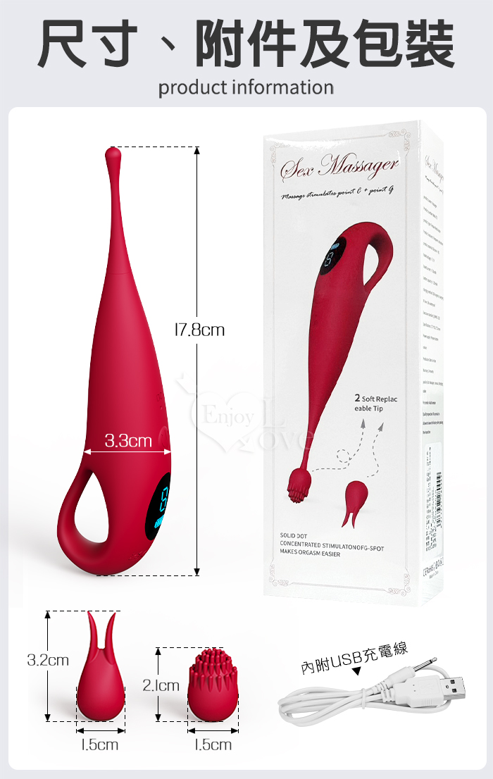主要功能:9頻聲波高頻震動,液晶顯示刺激12,000根神經,雙頭套帶來多種花樣玩法