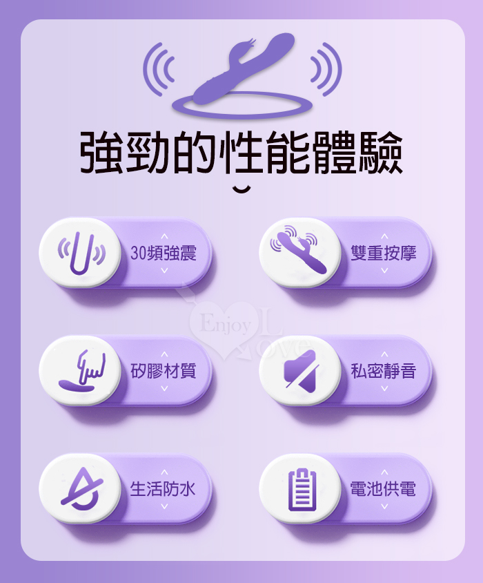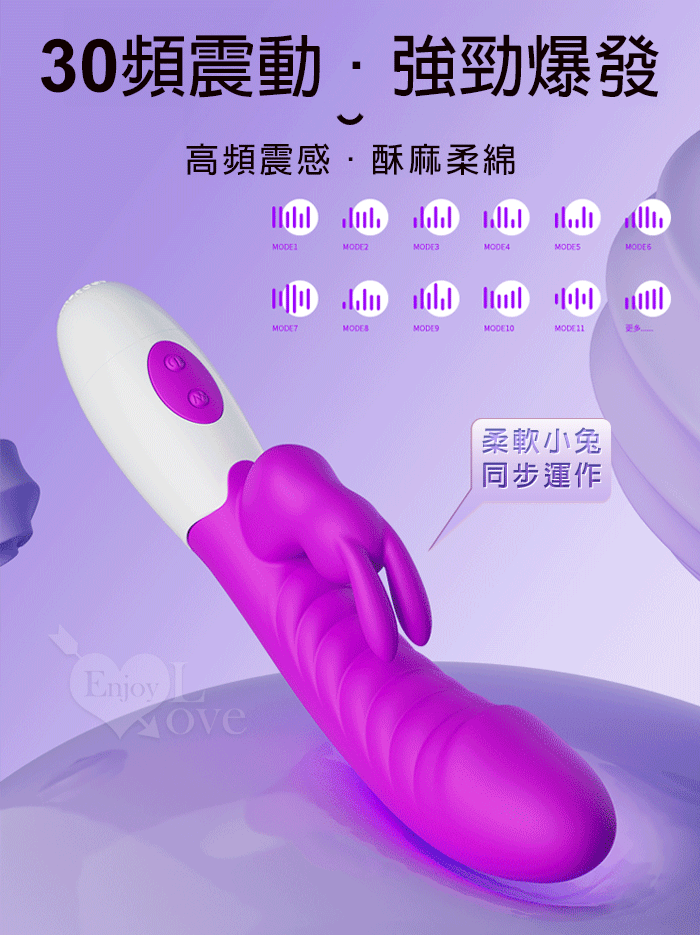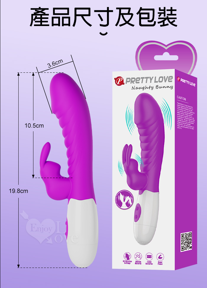 | PRETTY LOVE 派蒂菈 ‧ 頑皮兔 內外雙重30頻雙頭同震按摩棒-洋紅