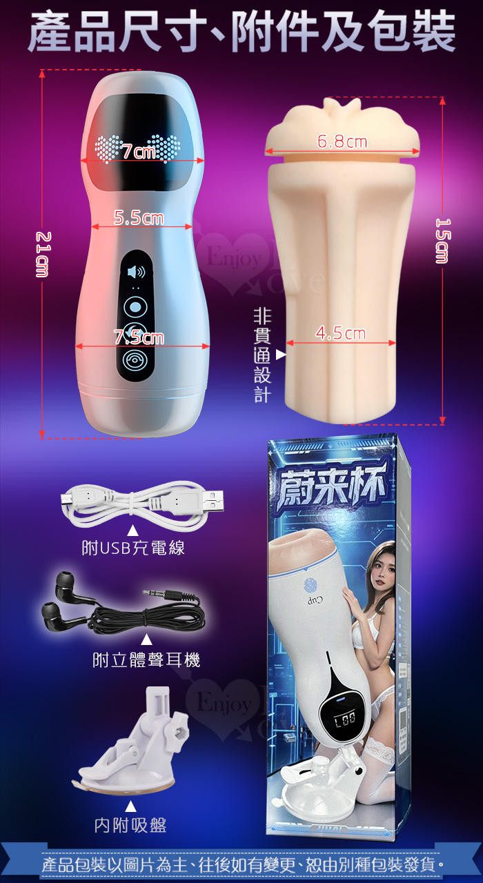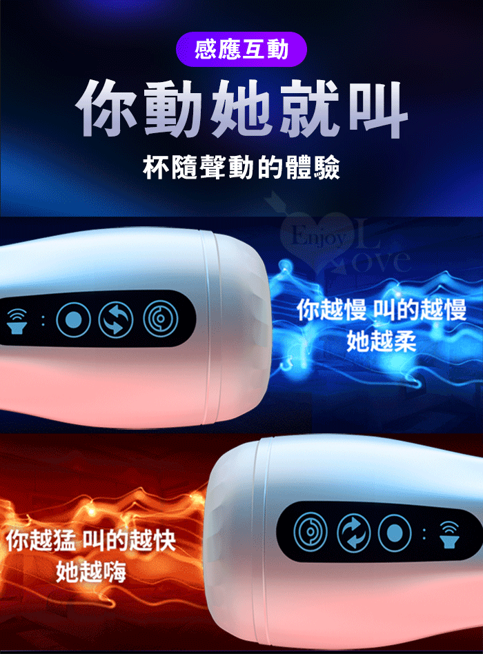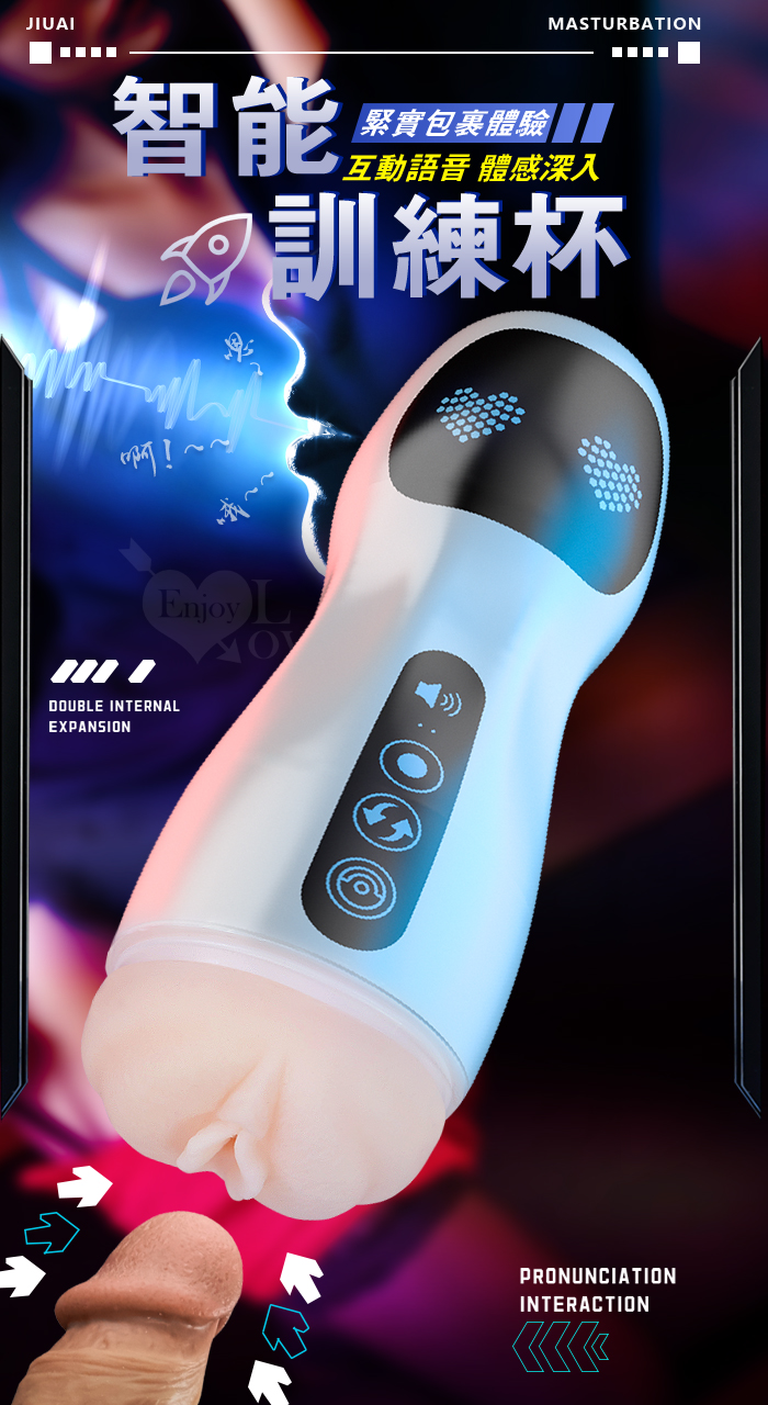JIUAI 星爵杯 ‧ 快樂自慰飛機杯-智能互動感應語音+12頻震動自慰訓練杯-升級款﹝免手持吸附+附耳機淫聲+USB充電﹞
