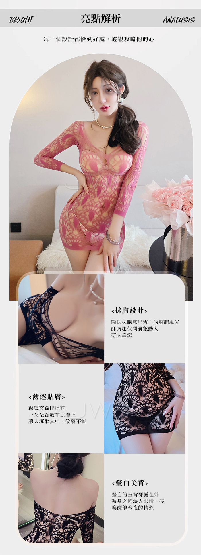 | 嵐花嫣然.知性提花大網眼透膚性感包臀網衣【裸粉色】