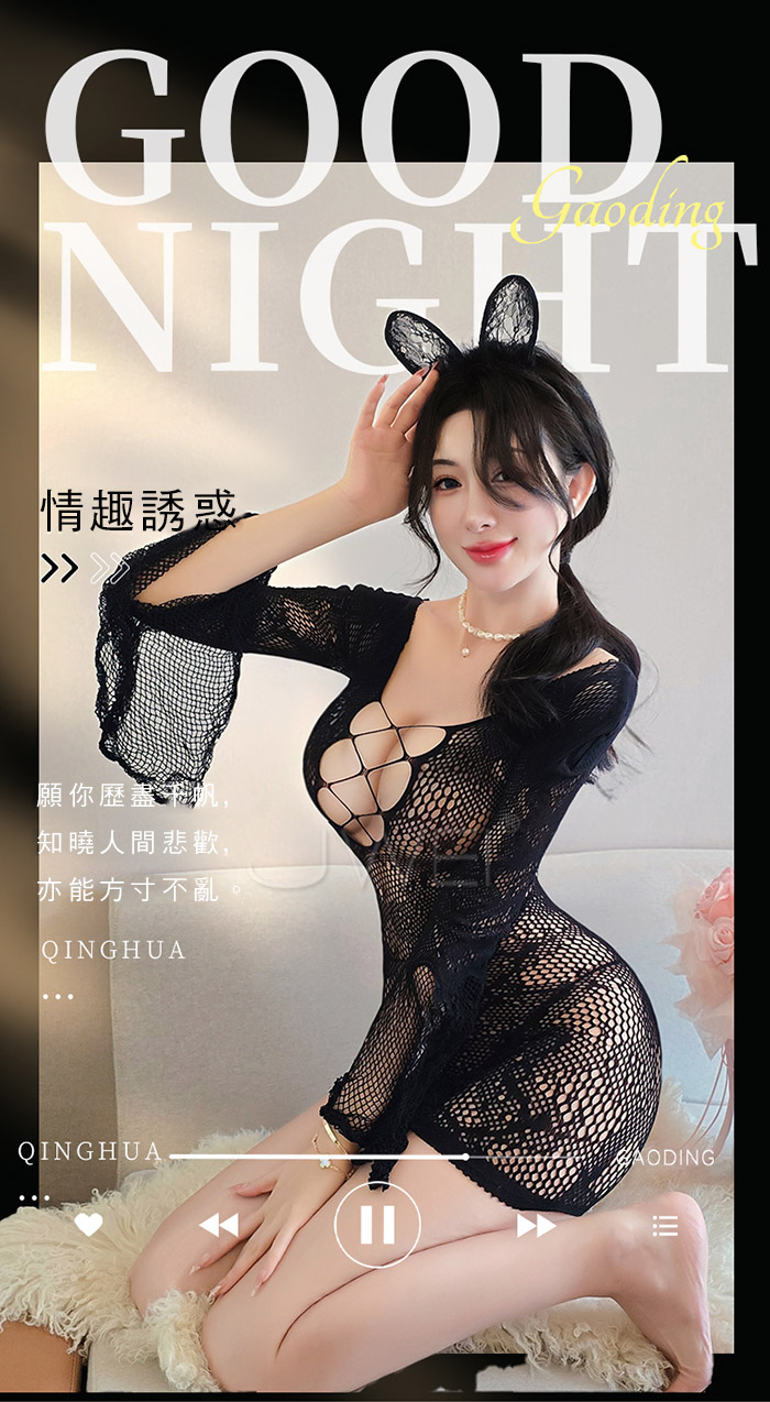| 極性貓裝!胸前深V蝴蝶結後腰鏤空連身網衣