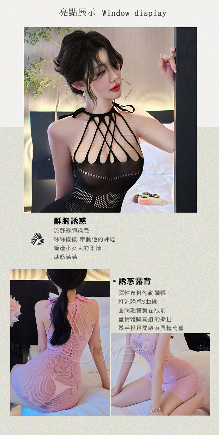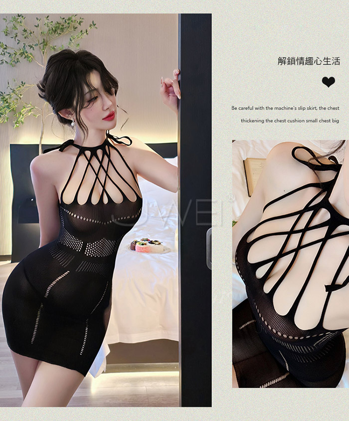 ►您現在的位置:首頁>爵色風華.誘惑流蘇交叉露胸美背鏤空包臀網衣【黑色】