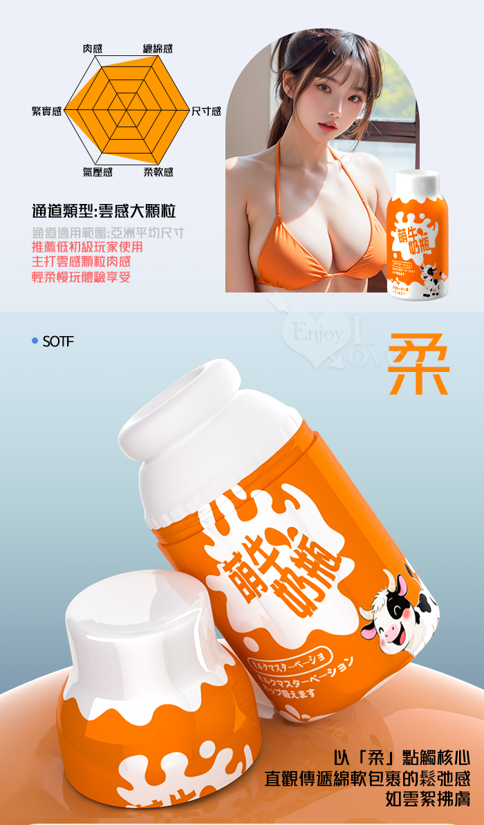 | 萌牛奶瓶 ‧ 云感大顆粒覆蓋肉感自慰器﹝初階輕柔慢玩款-橙色﹞