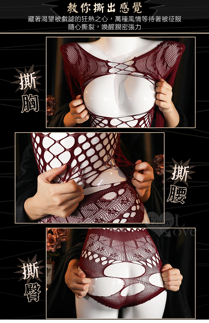 | 可撕鏤空網紗連身衣|高彈裸膚透視網眼・蜜桃美臀造型