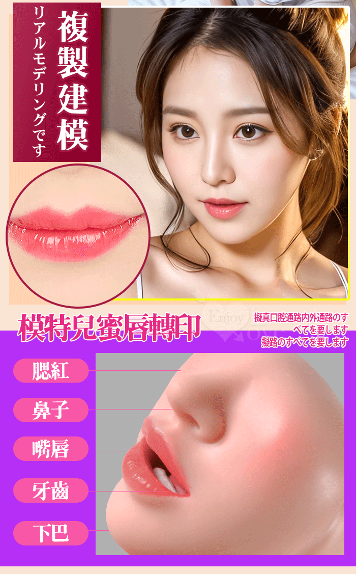 | Tasty 爽口 ‧ 全智能互動四國發音震動~SEX網紅蜜唇複製 全矽膠質口喉齒完全再現舌技口交夾吸器﹝附贈120ml潤滑液﹞