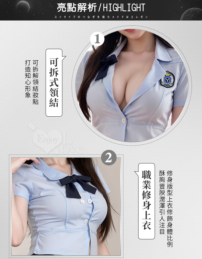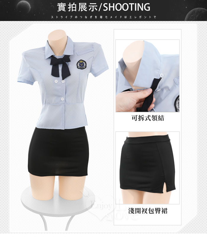 ►您現在的位置:首頁>教官角色扮演服!俐落挺版側開衩微傘擺短襯衫高腰包臀裙四件式套裝