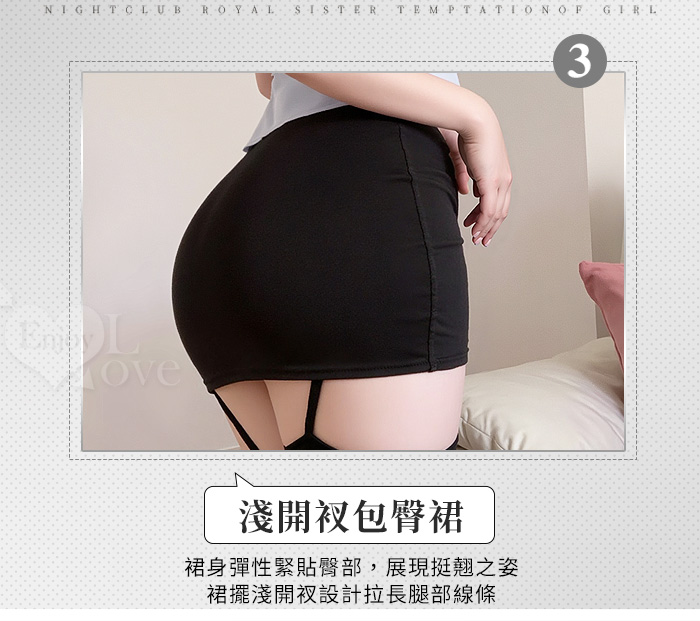 教官角色扮演服!俐落挺版側開衩微傘擺短襯衫高腰包臀裙四件式套裝
